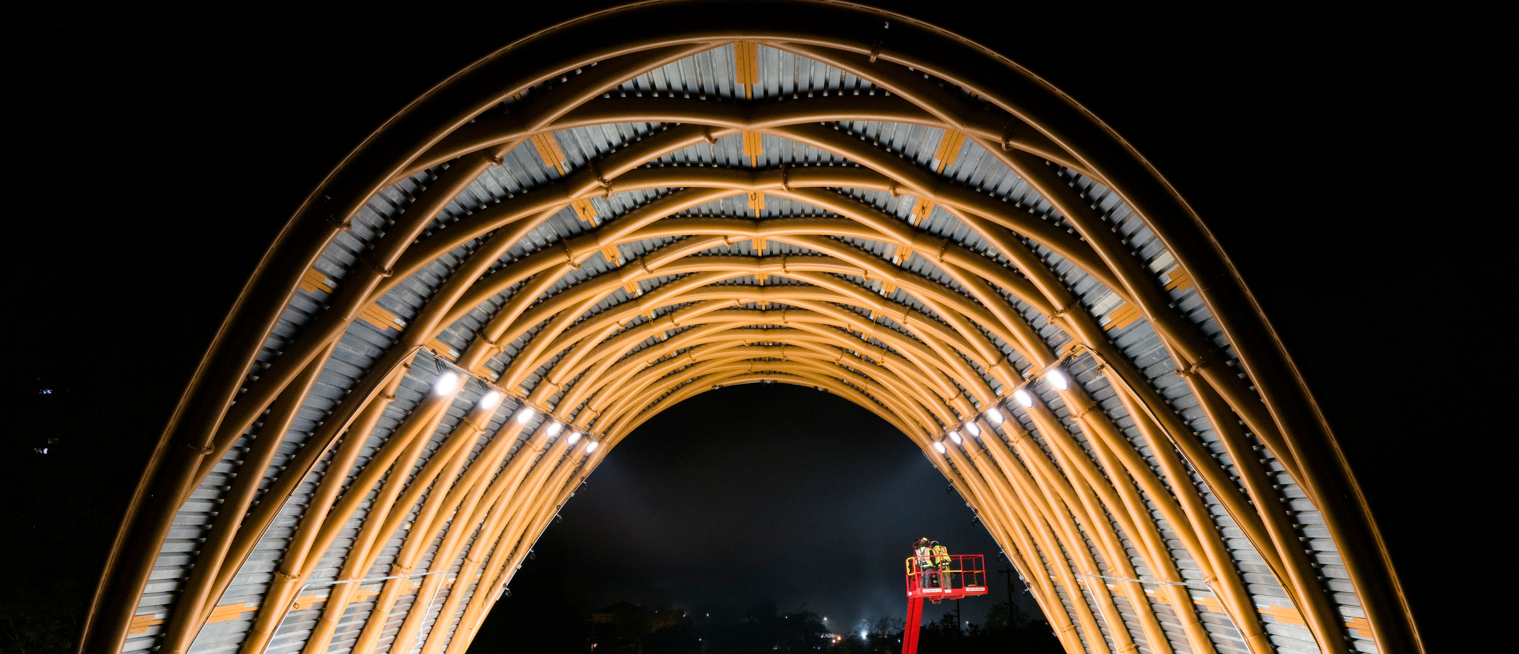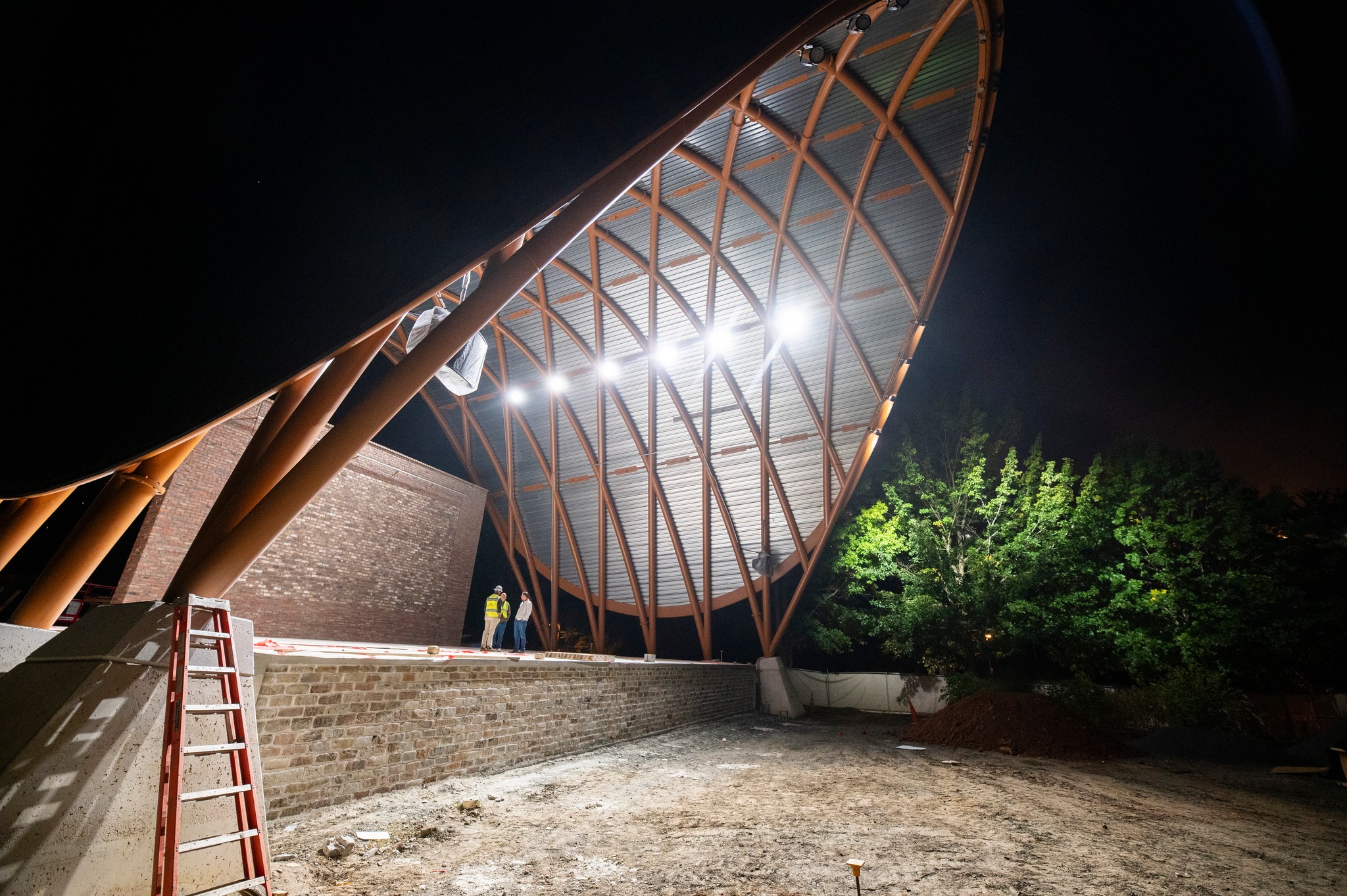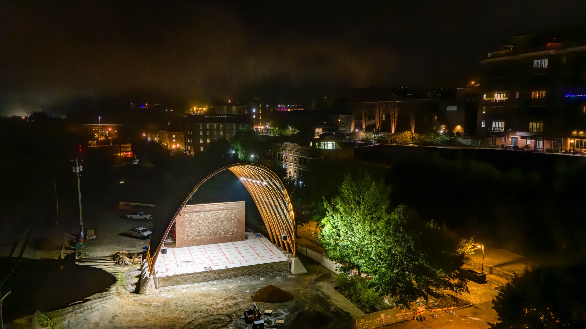 Last week, Jamerson-Lewis Construction and the City of Lynchburg flipped the switch for the very first time — and the results are stunning. The project is on schedule, and the newly illuminated arches are already showcasing the incredible atmosphere this space will soon bring to life.